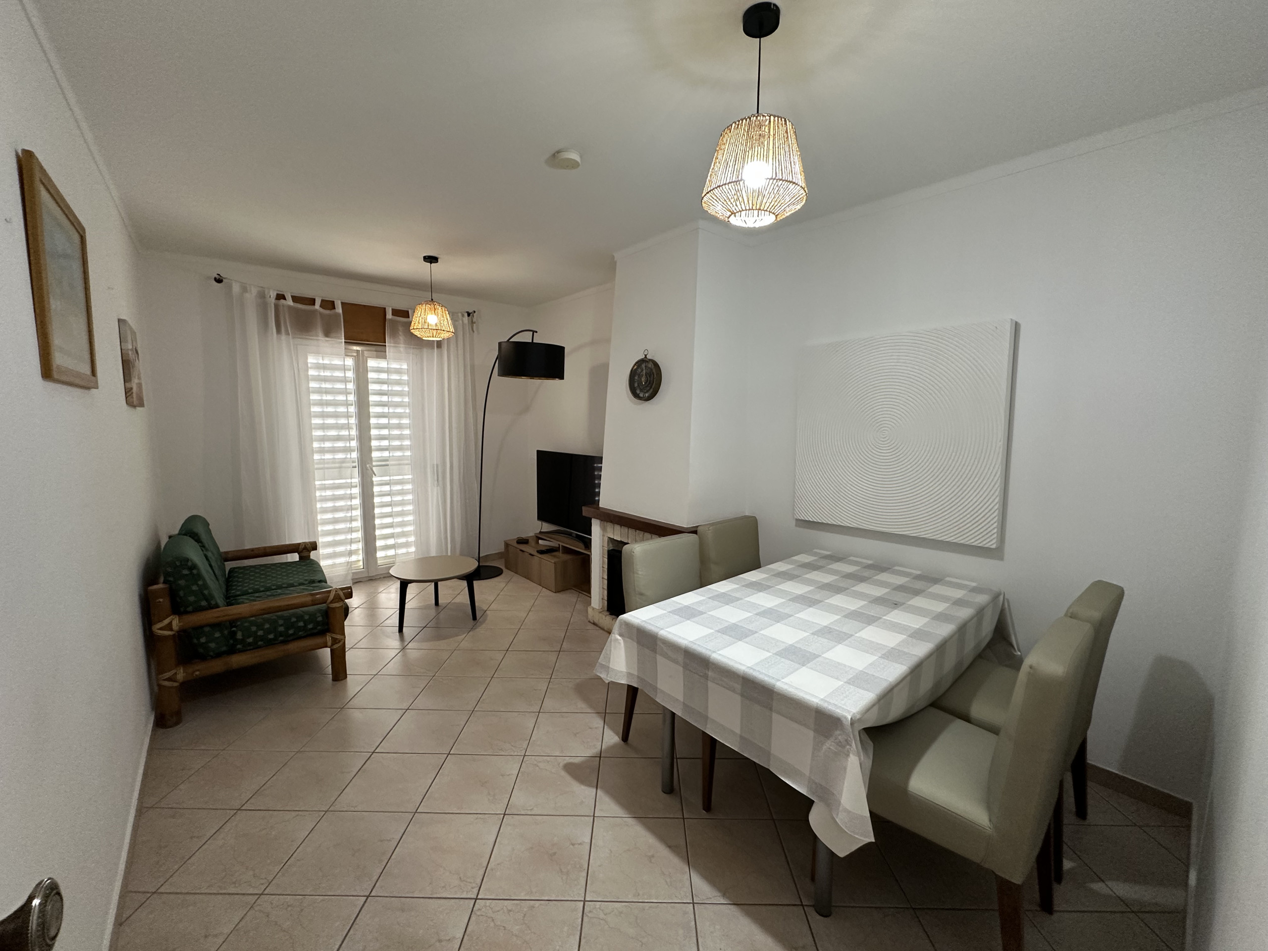 A sala tem duas zonas distintas, a de jantar e estar, a sala de jantar tem uma mesa de 4 lugares, a sala de estar tem uma mesa de centro, móvel com TV satélite, um sofá e dois sofás-cama individuais e acesso à varanda.