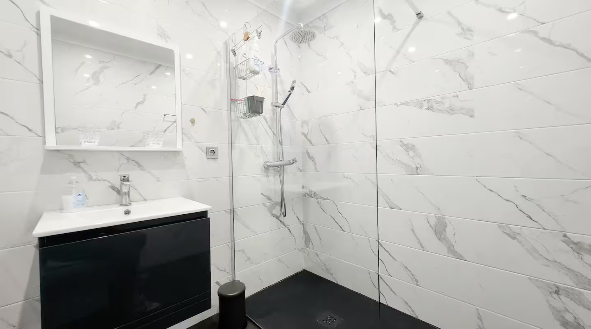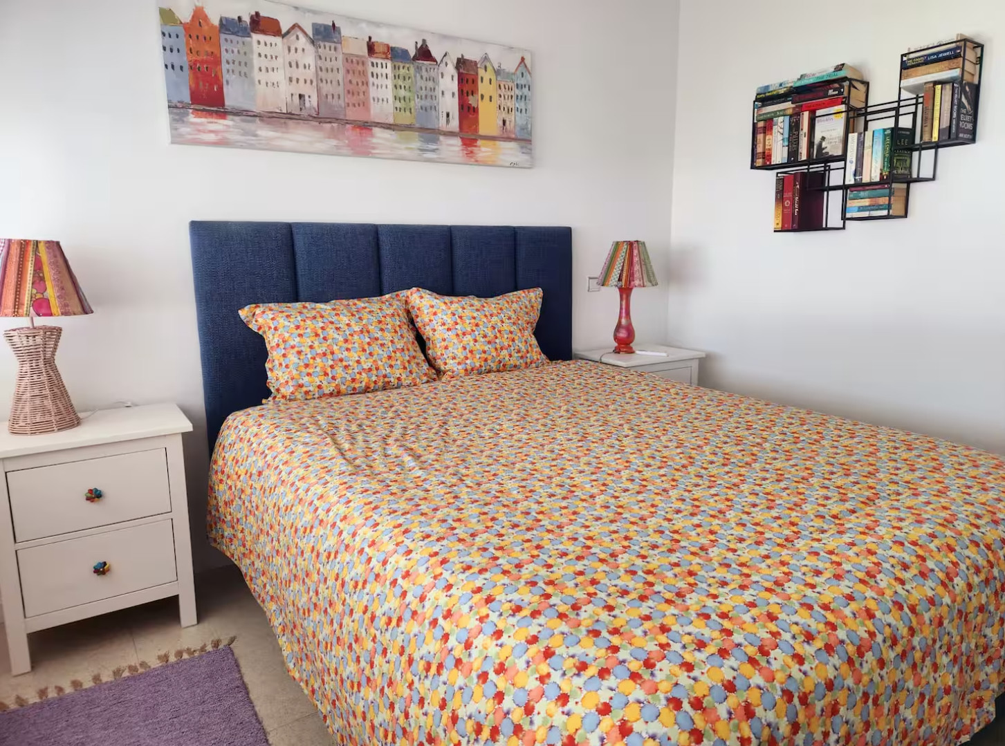 The main bedroom, with a double bed, is air-conditioned and has a built-in wardrobe. This apartment has 1 complete bathroom with a shower.
