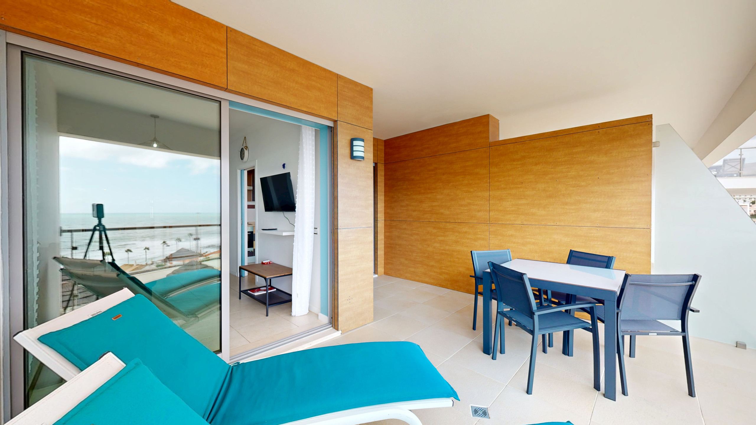 The balcony offers outdoor furniture, with a table and chairs to be able to enjoy breakfast on the balcony with sea view.