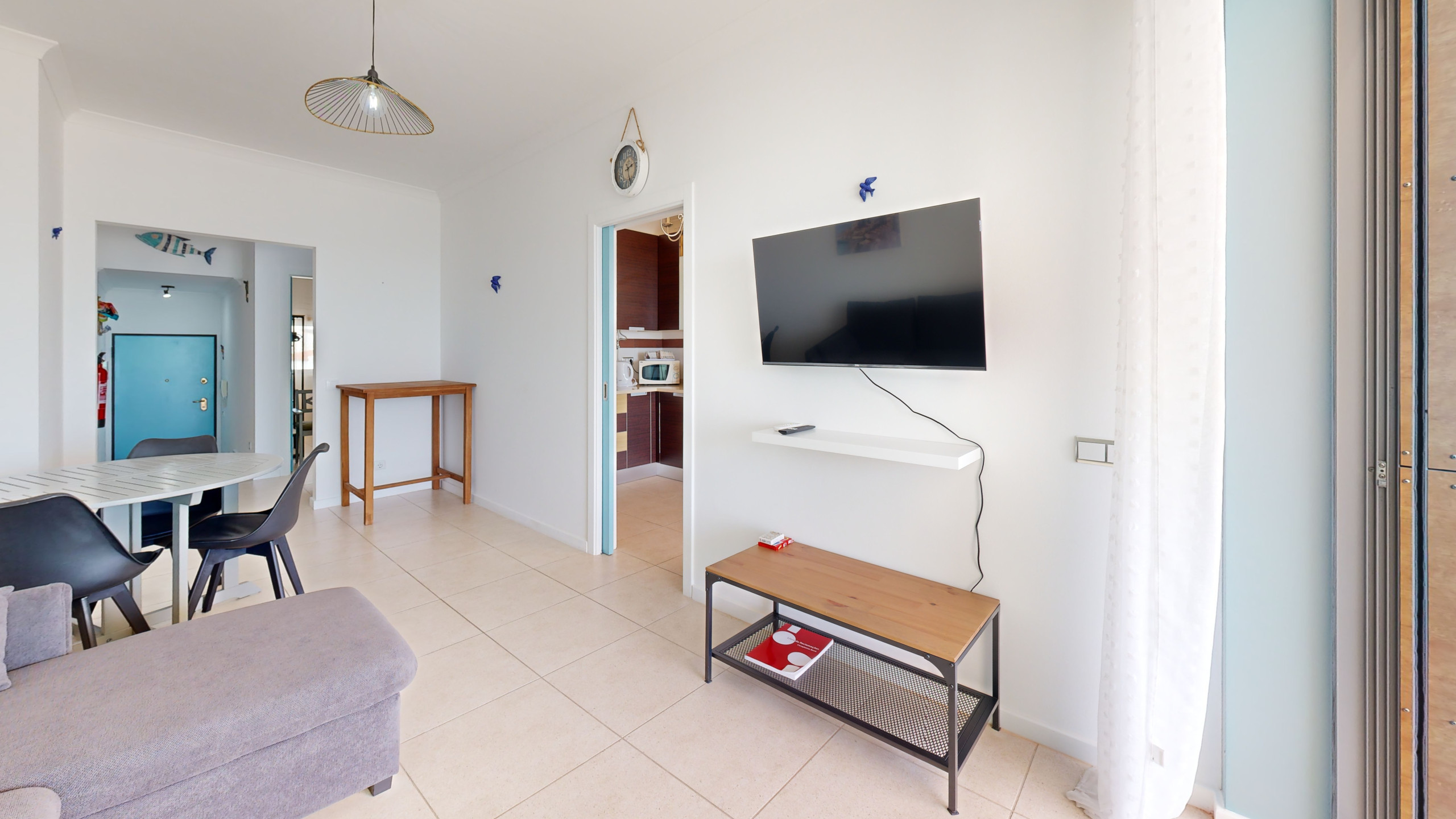 It stands out for its fantastic view from the south-facing balcony overlooking the sea, price-quality ratio, excellent location and sun exposure, and good levels of comfort.