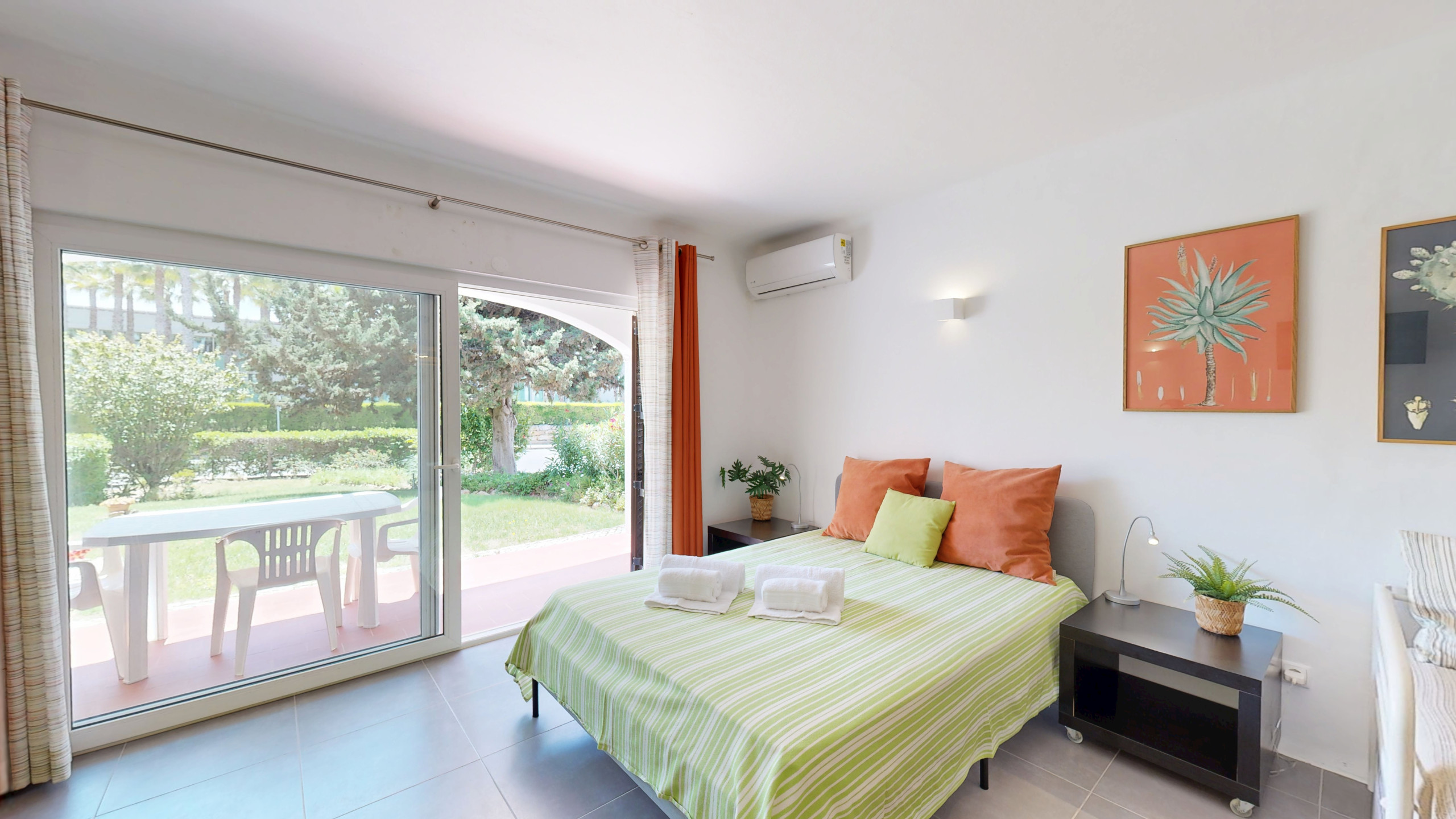 Located on the ground floor, it consists of an entrance hall, a bathroom, a large living room with a seating area, dining room and open kitchen, and access to the garden balcony.