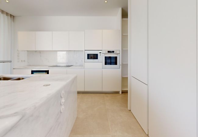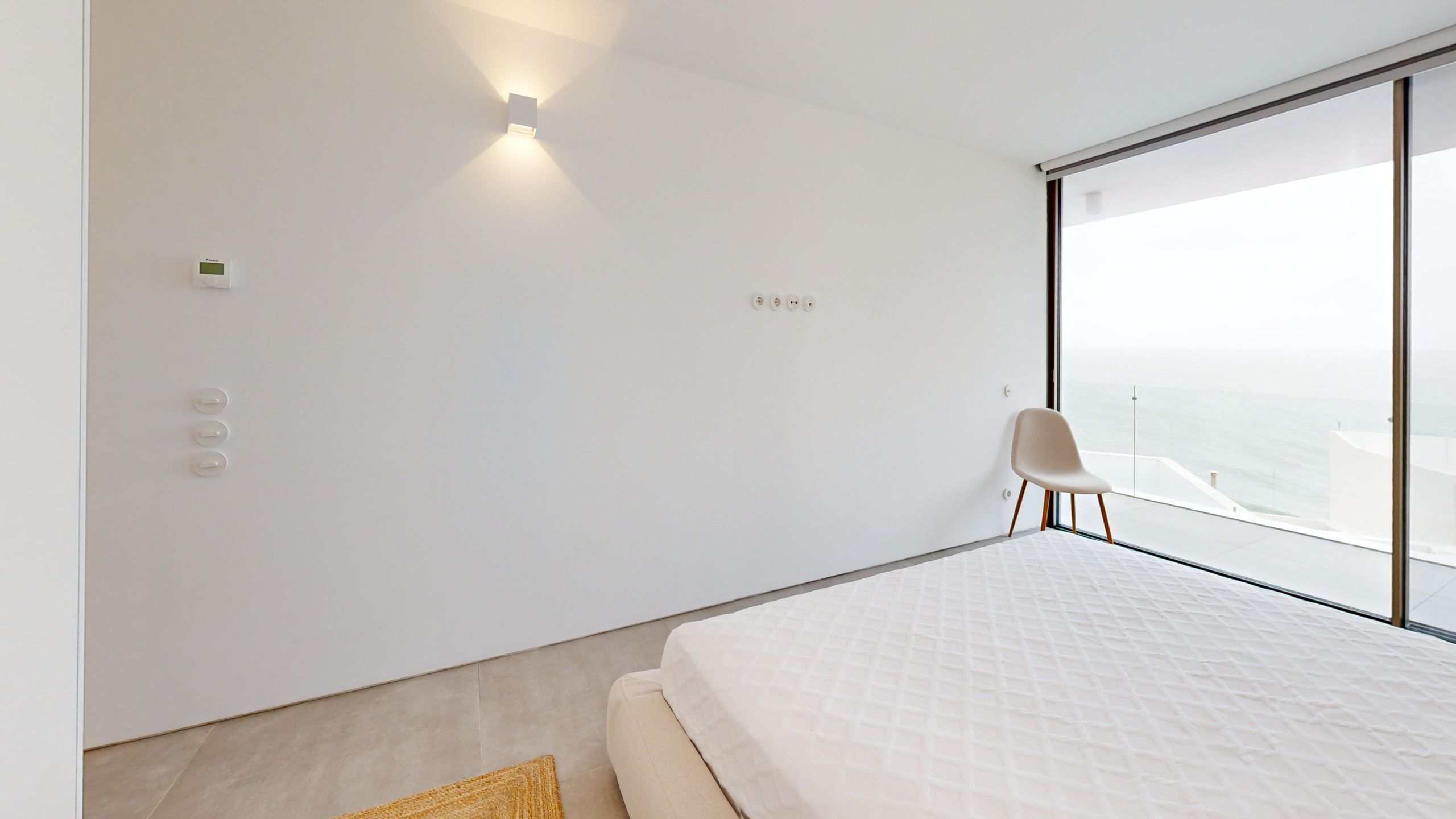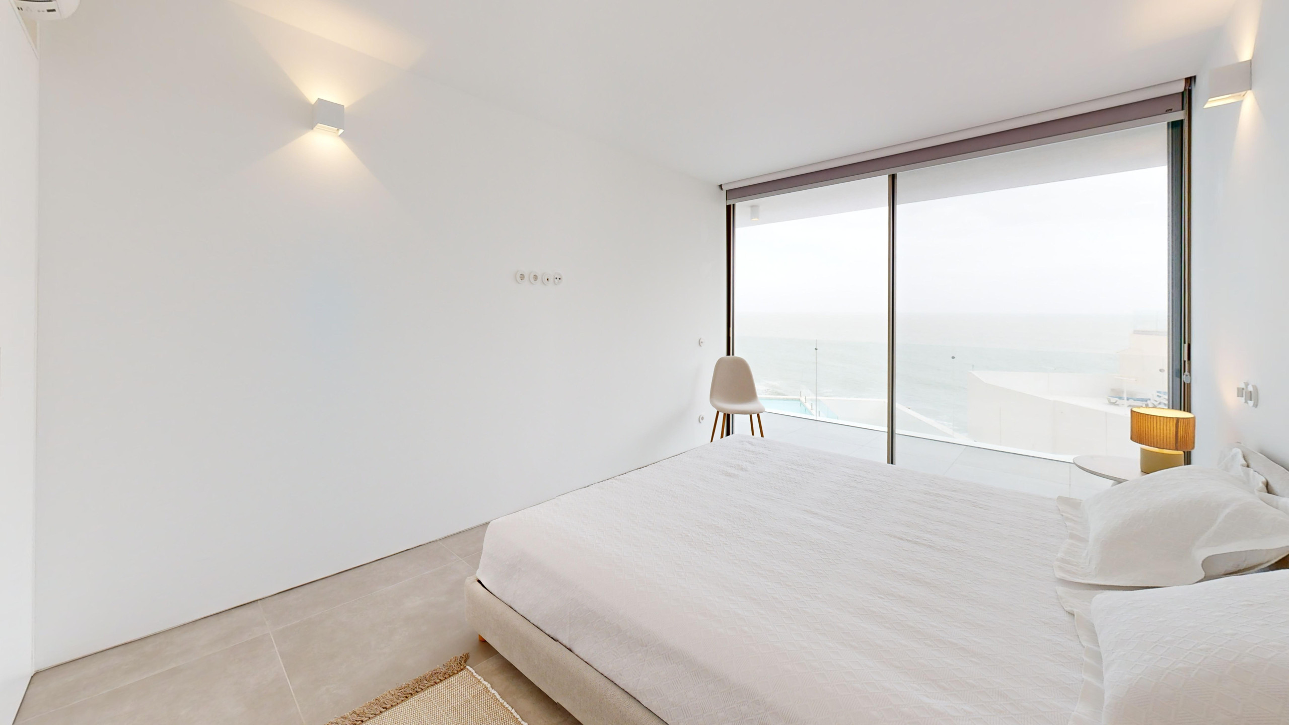 Upon entering, you are immediately greeted by a stunning view of the sea and the swimming pool. The open-plan living room and kitchen, with large panoramic windows, offer plenty of natural light and a relaxing atmosphere.