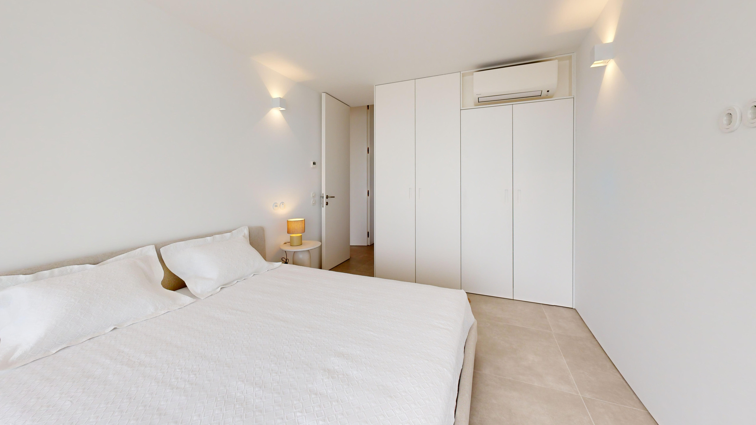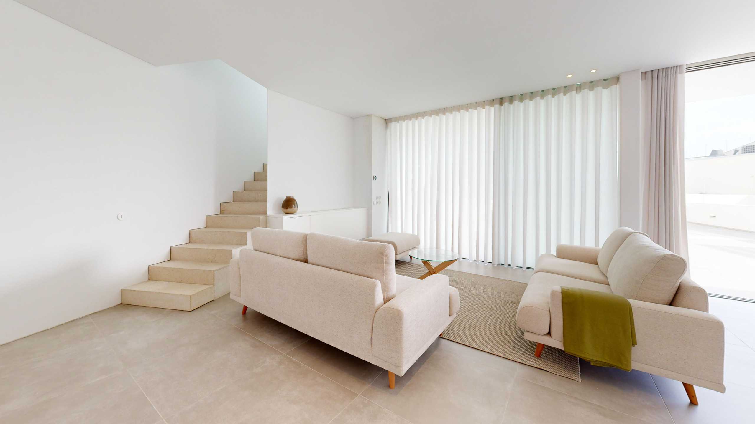 A spacious villa, conceived within high standards of comfort and quality. Fully equipped, with a modern, functional decoration and excellent natural lighting thanks to the generous terrace with a pool that surrounds the living room and bedroom.